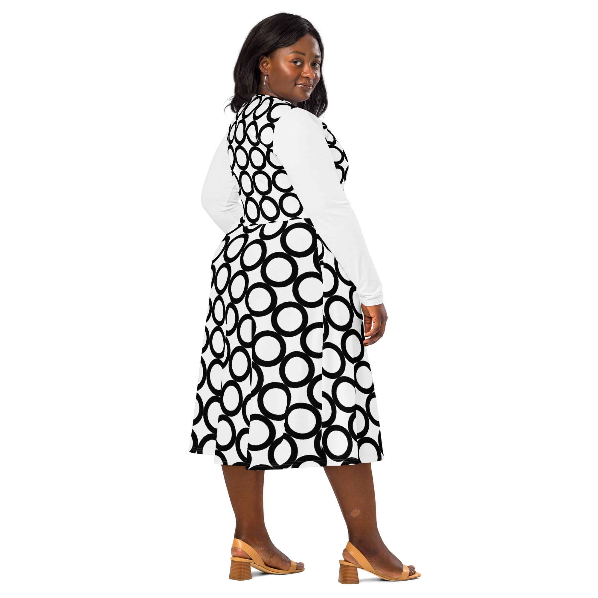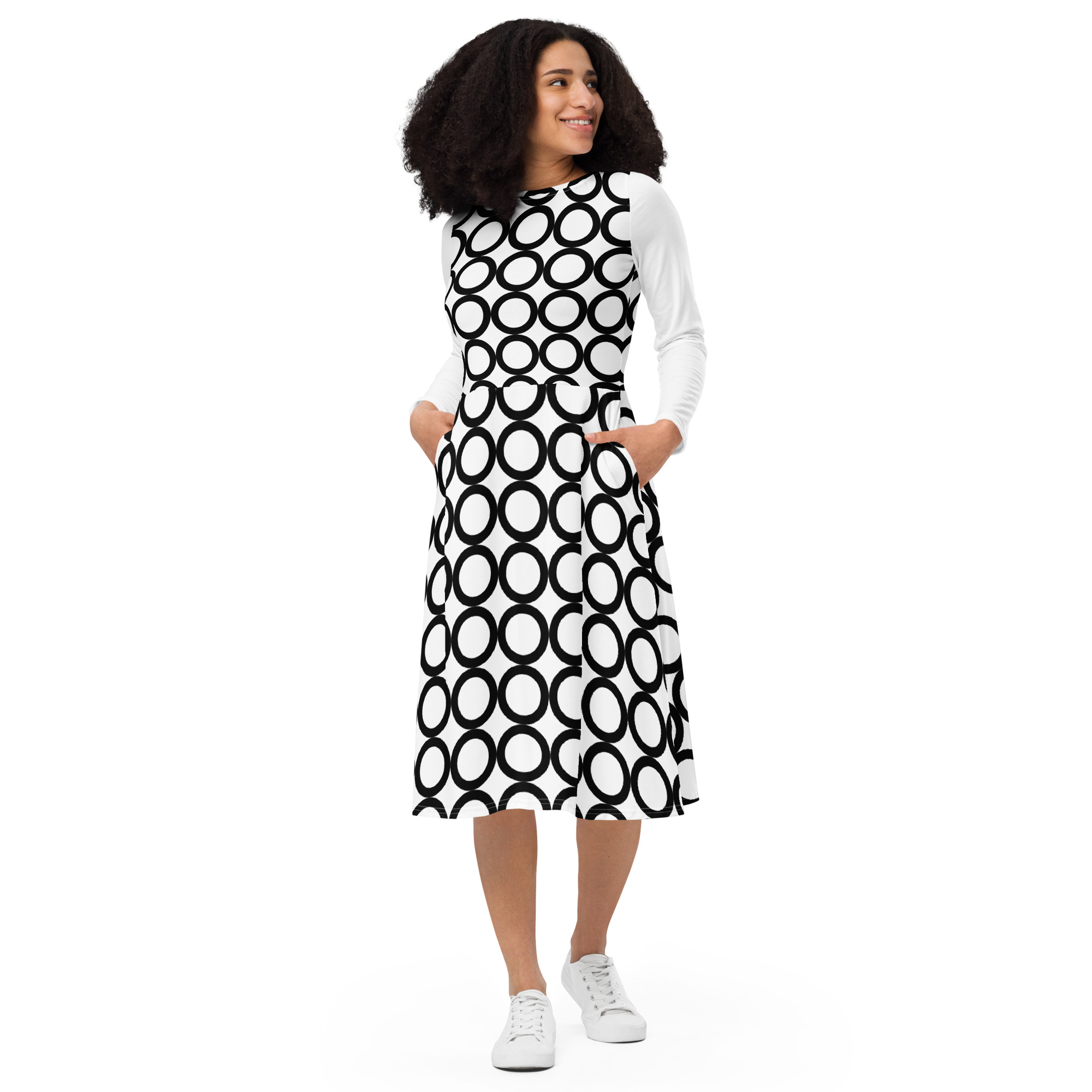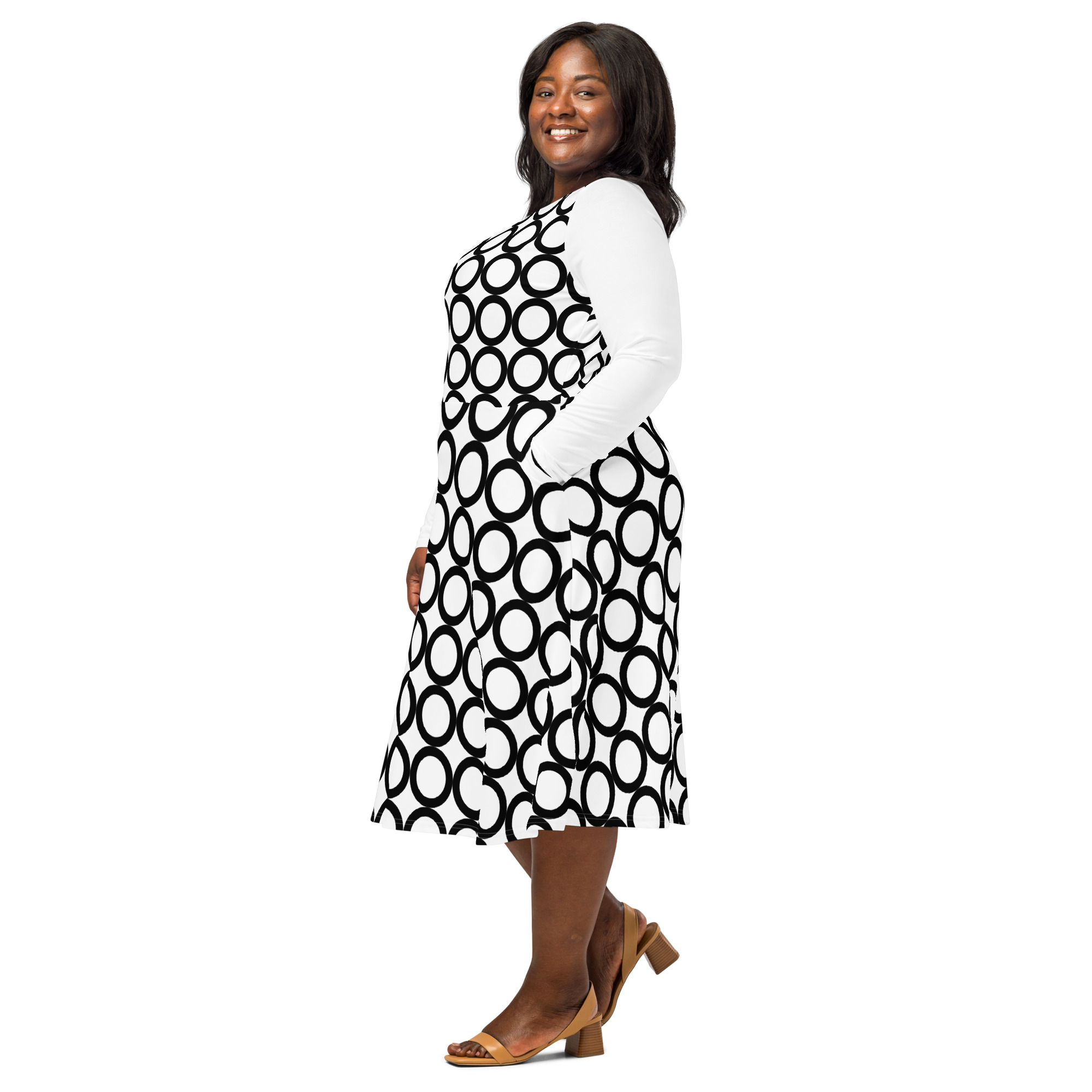 All-over Print Long Sleeve Midi Dress