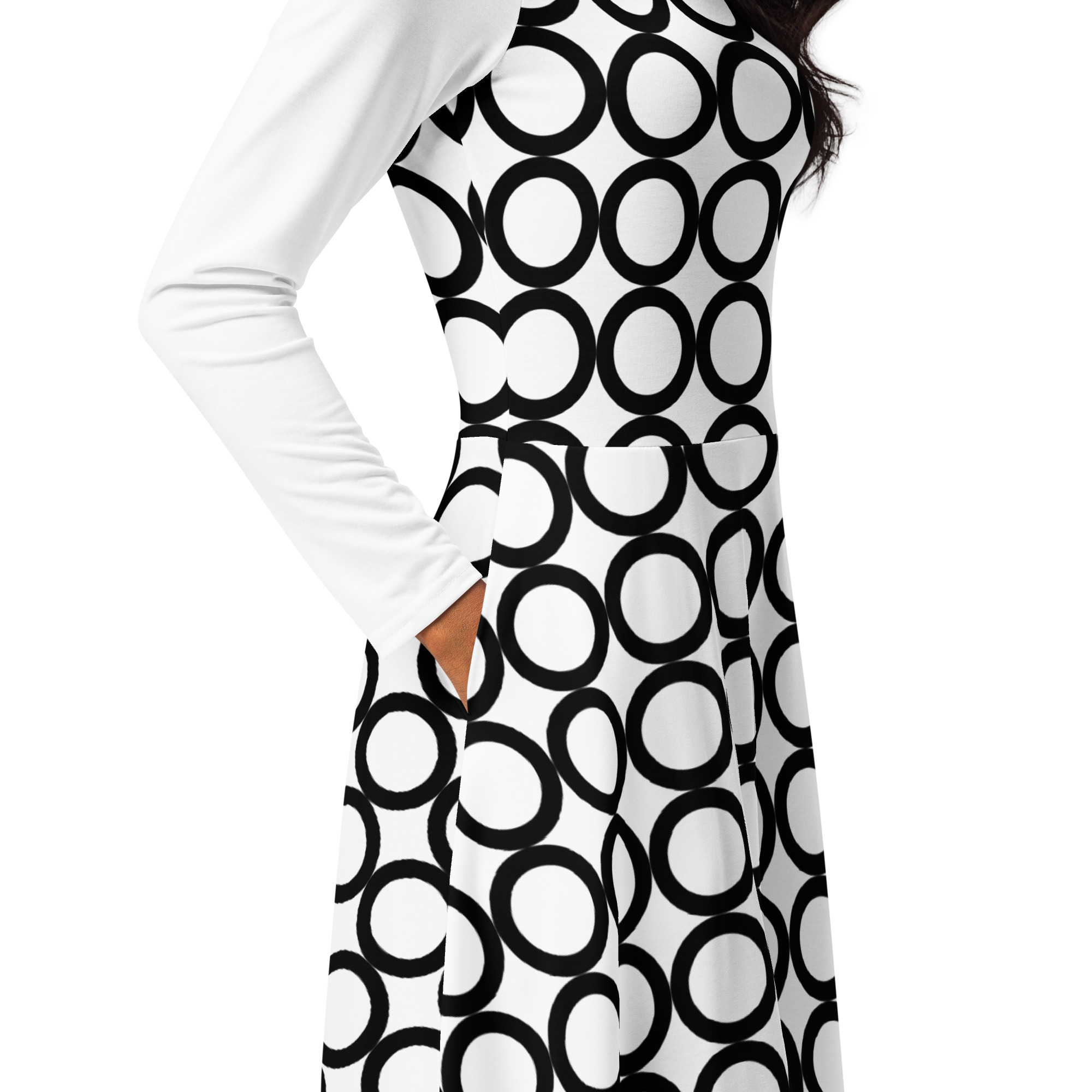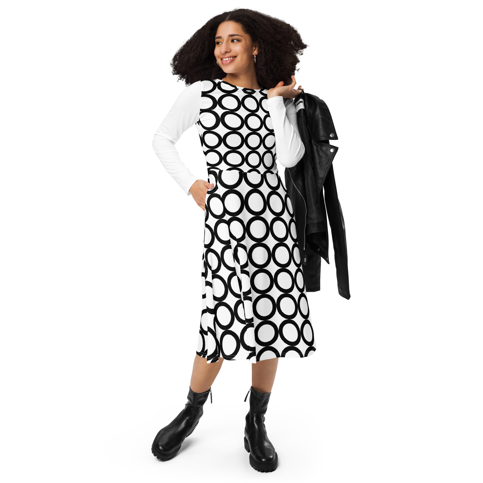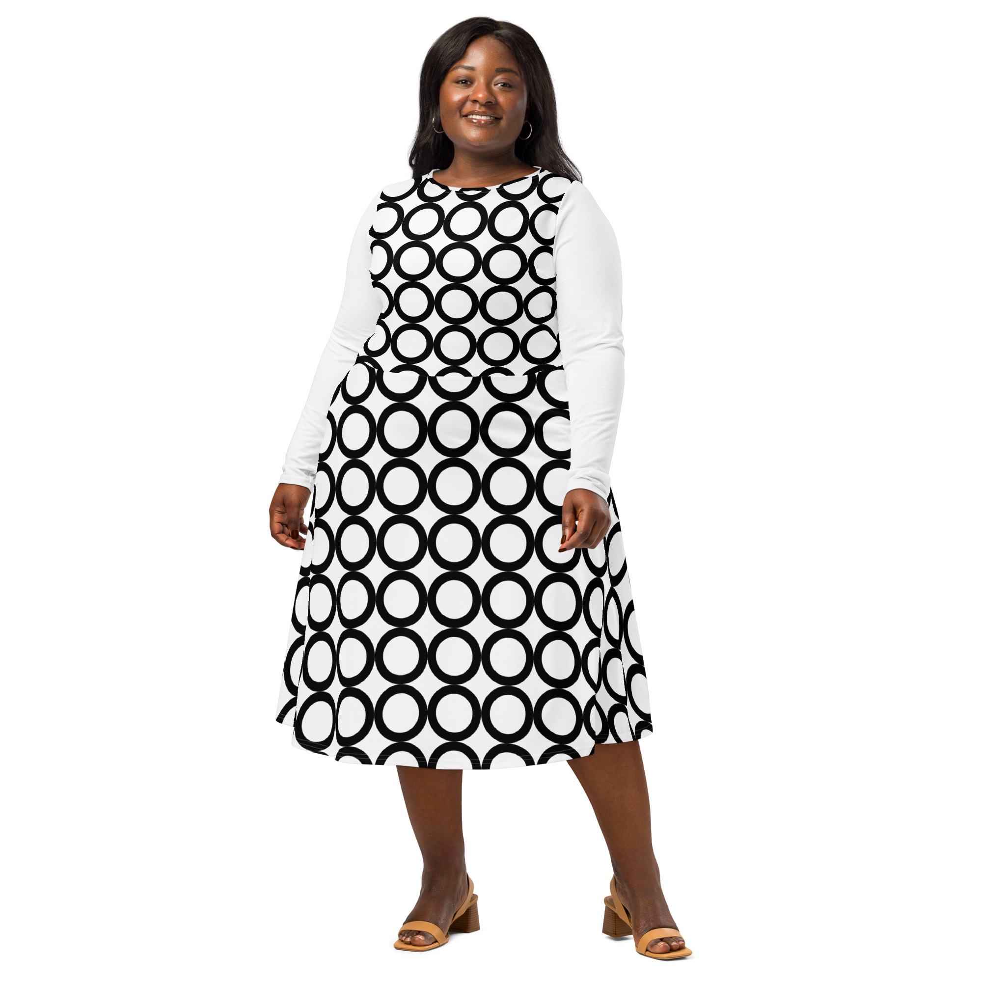 All-over Print Long Sleeve Midi Dress