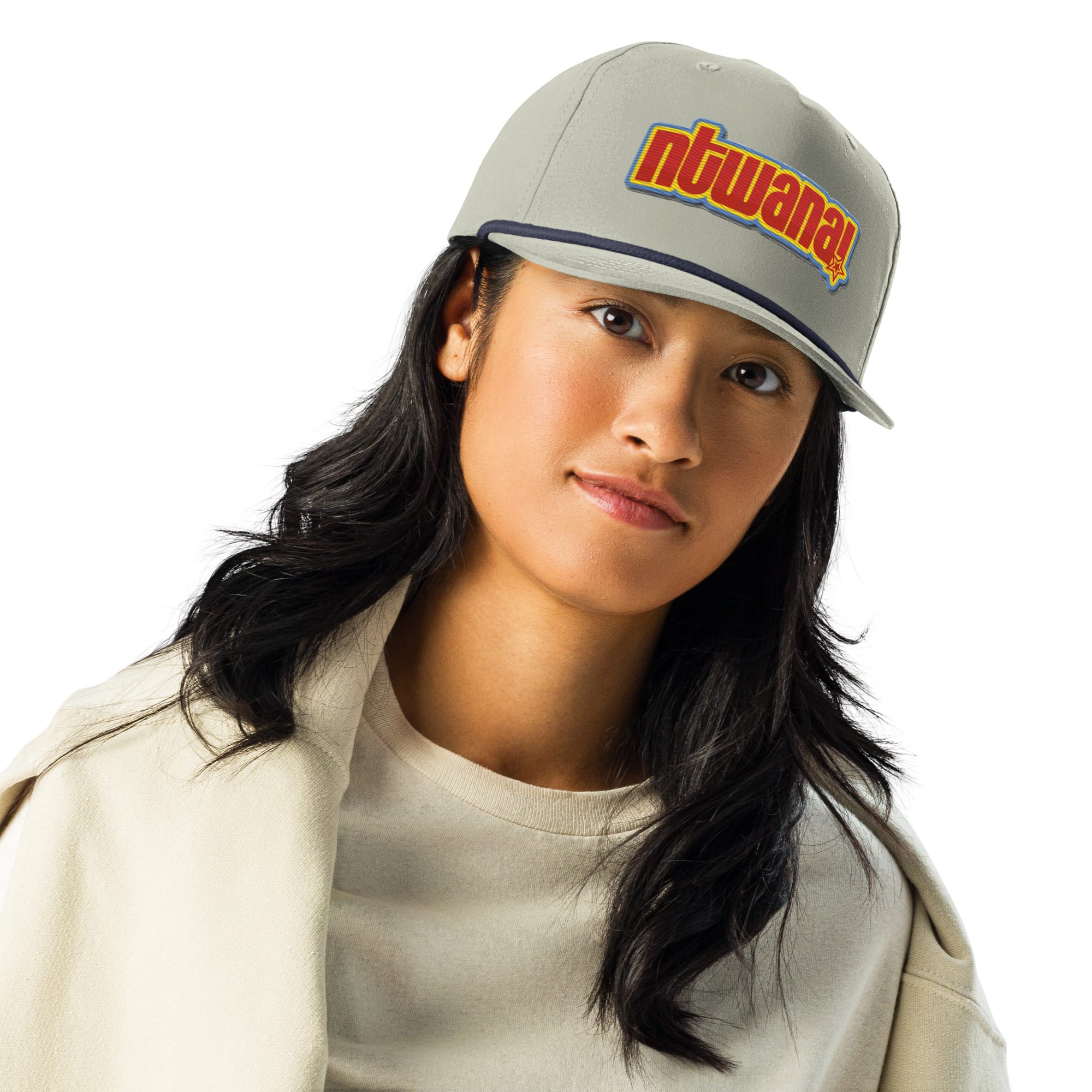 • Semi-curved bill with contrasting rope