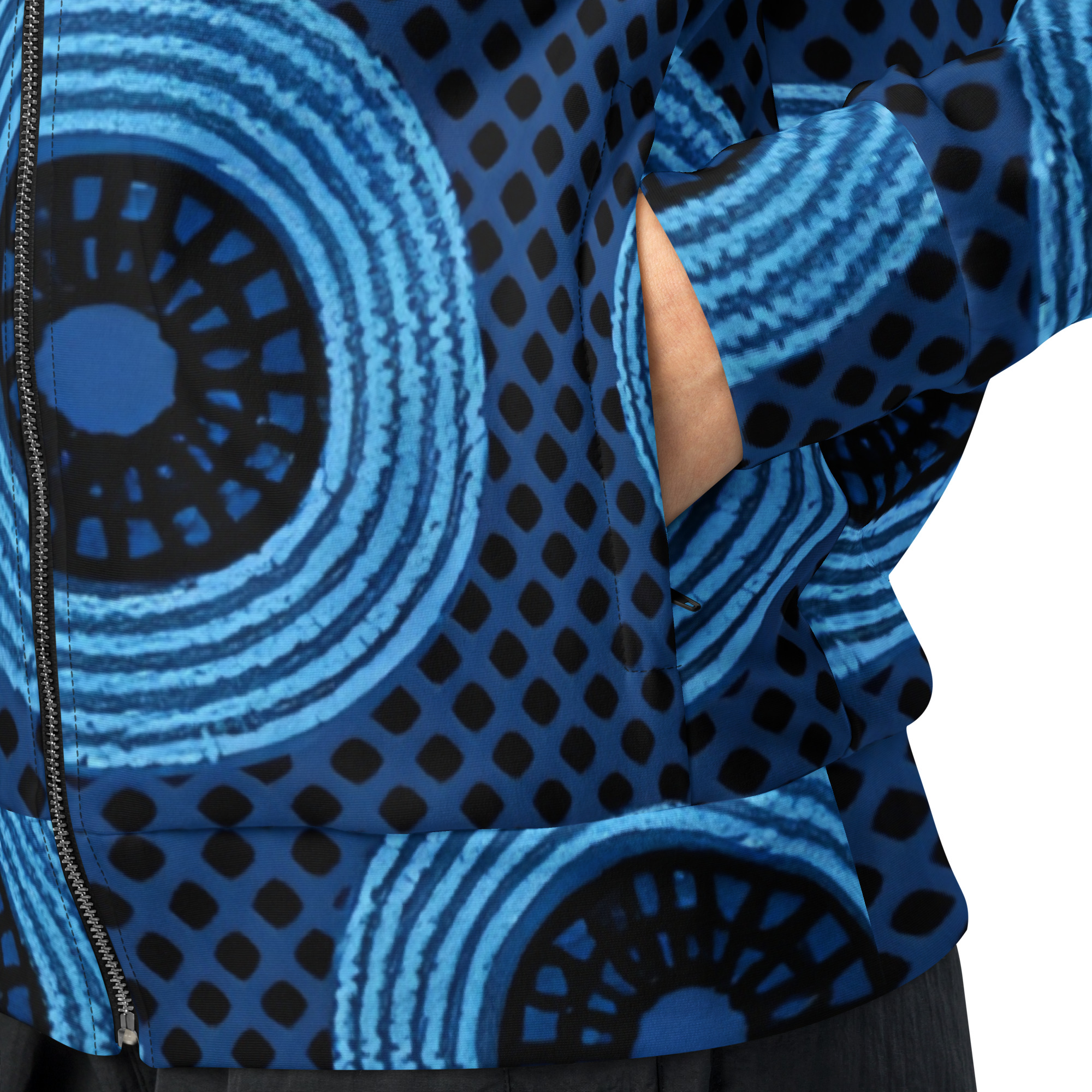 Disclaimer: In areas where the fabric is double-layered (like pockets), details from the inner fabric layer may subtly show through, especially with lighter designs.